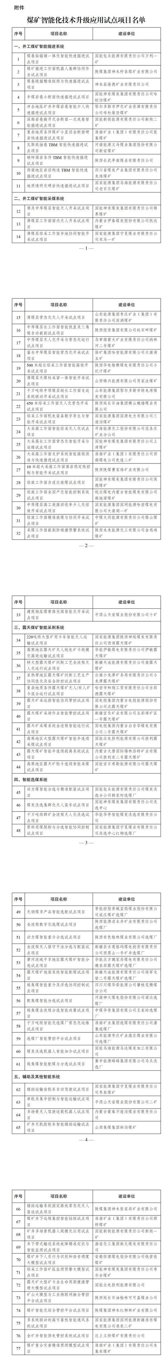国家能源局印发煤矿智能化技术升级应用试点项目名单