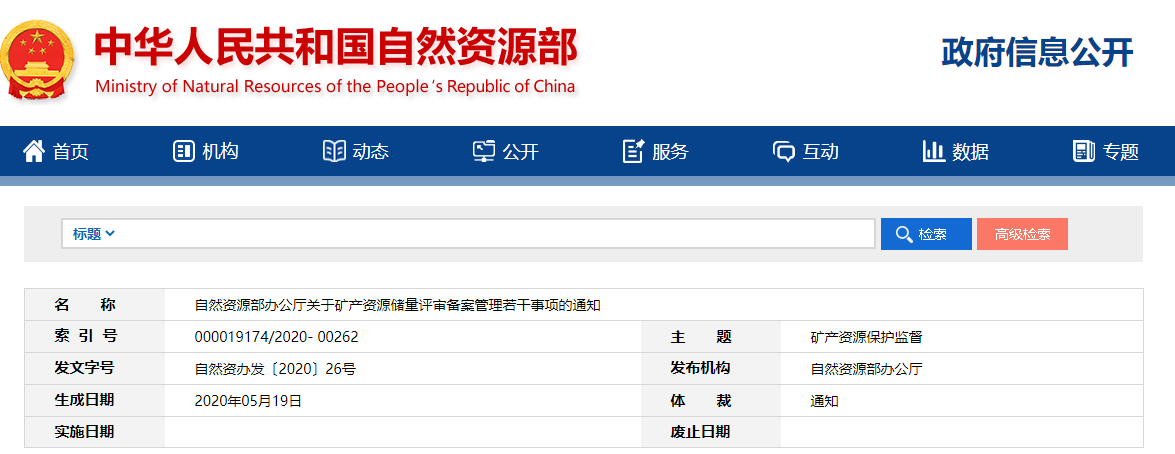 为深入推进“放管服”改革,根据《矿产资源法》有关规定和《自然资源部关于推进矿产资源管理改革若干事项的意见(试行)》(自然资规〔2019〕7号),现就矿产资源储量评审备案管理有关事项通知如下: