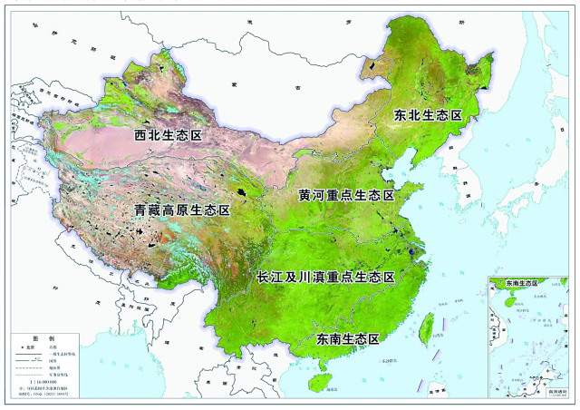 1.将全国陆域(不含港澳台)生态系统划分为一级生态区6个、二级生态区47个、三级生态区233个。
