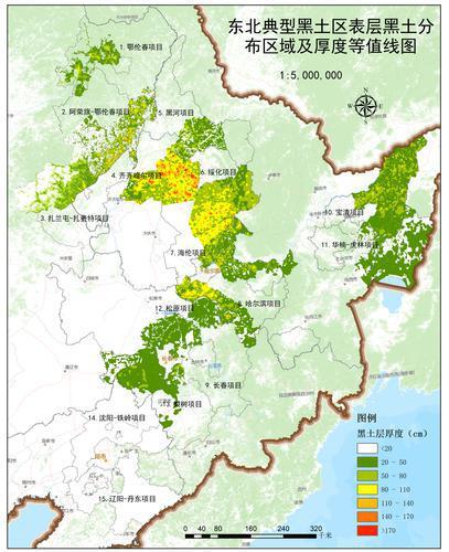东北典型黑土区表层黑土分布区域及厚度等值线图