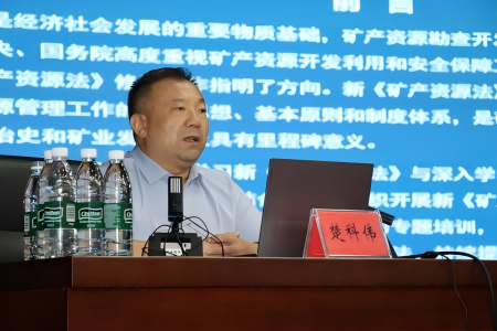 本次培训班课程紧扣新《矿产资源法》核心要义和实践需求以及配套政策实际。特邀多位在矿产资源立法、矿政管理、执法和法务服务领域具有较深造诣和经验的一线领导专家授课。自然资源部法规司法规二处副处长罗小民《新<矿产资源法>的立法背景和主要内容》进行了全面系统权威解读,河南省自然资源厅矿业权管理处副处长殷志勇就《新<矿产资源法>及相关矿业权出让登记许可政策动向》进行了详细解析,国土空间生态修复处副处长杨华东、矿产资源保护监督处三级调研员王智辉和汝州市地质矿产保护发展中心干部赵宏胜分别以《矿区生态修复法律规定及操作务实》《矿产资源规划和压矿监管》和《明确责任范围 增强法治意识 促进矿业绿色健康可持续发展》为题进行系统权威讲解;北京雨仁(洛阳)律师事务所主任楚科伟、专职律师李卓凡和河南郑大律师事务所律师、郑州大学法学院副教授杨会永结合典型案例,分别就新《矿产资源法》等法规背景下的矿业权人权利和义务以及《我国矿产资源法律体系及重点问题》进行了深入浅出的讲解。