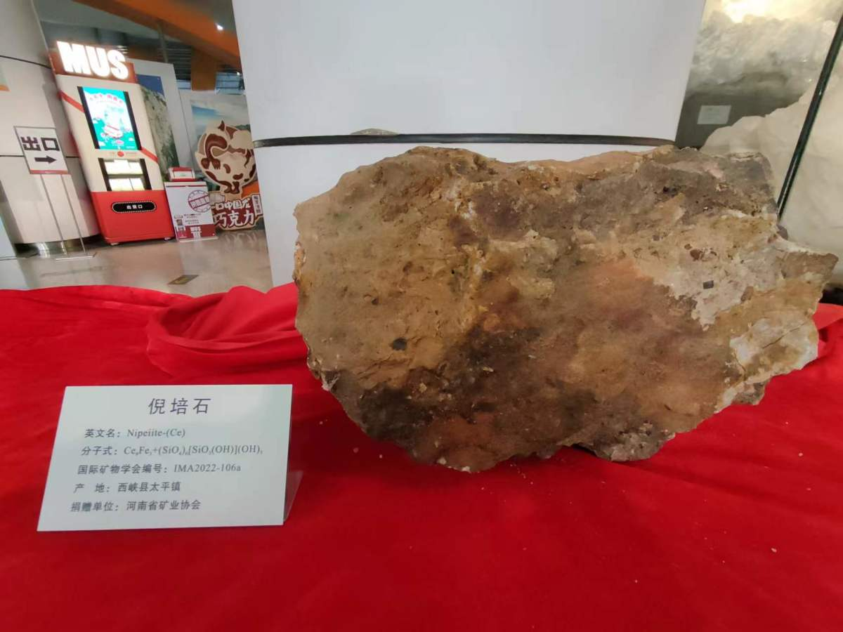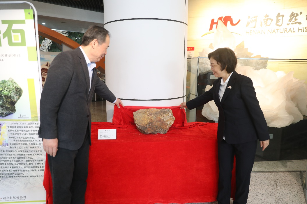 2024年4月22日至4月28日是第55个“世界地球日”主题宣传活动周。为使“珍爱地球,人与自然和谐共生”的理念更加深入人心,4月20日上午,河南省矿业协会联合河南自然博物馆、河南省地质学会共同举办了主题宣传活动启动仪式。仪式中,河南省矿业协会负责人冯进城向河南自然博物馆捐赠了一块发现于西峡的珍贵矿物标本——“倪培石”,这也是河南省的第十个新矿物,吸引了众多专家学者以及媒体的关注。河南自然博物馆馆长徐莉欣喜地表示,“倪培石”矿物标本的入驻填补了博物馆藏品的空白,将成为博物馆的新镇馆之宝。这块珍贵的标本不仅在地质学上具有重要意义,更将为博物馆的科学研究和展览工作增添新的亮点。