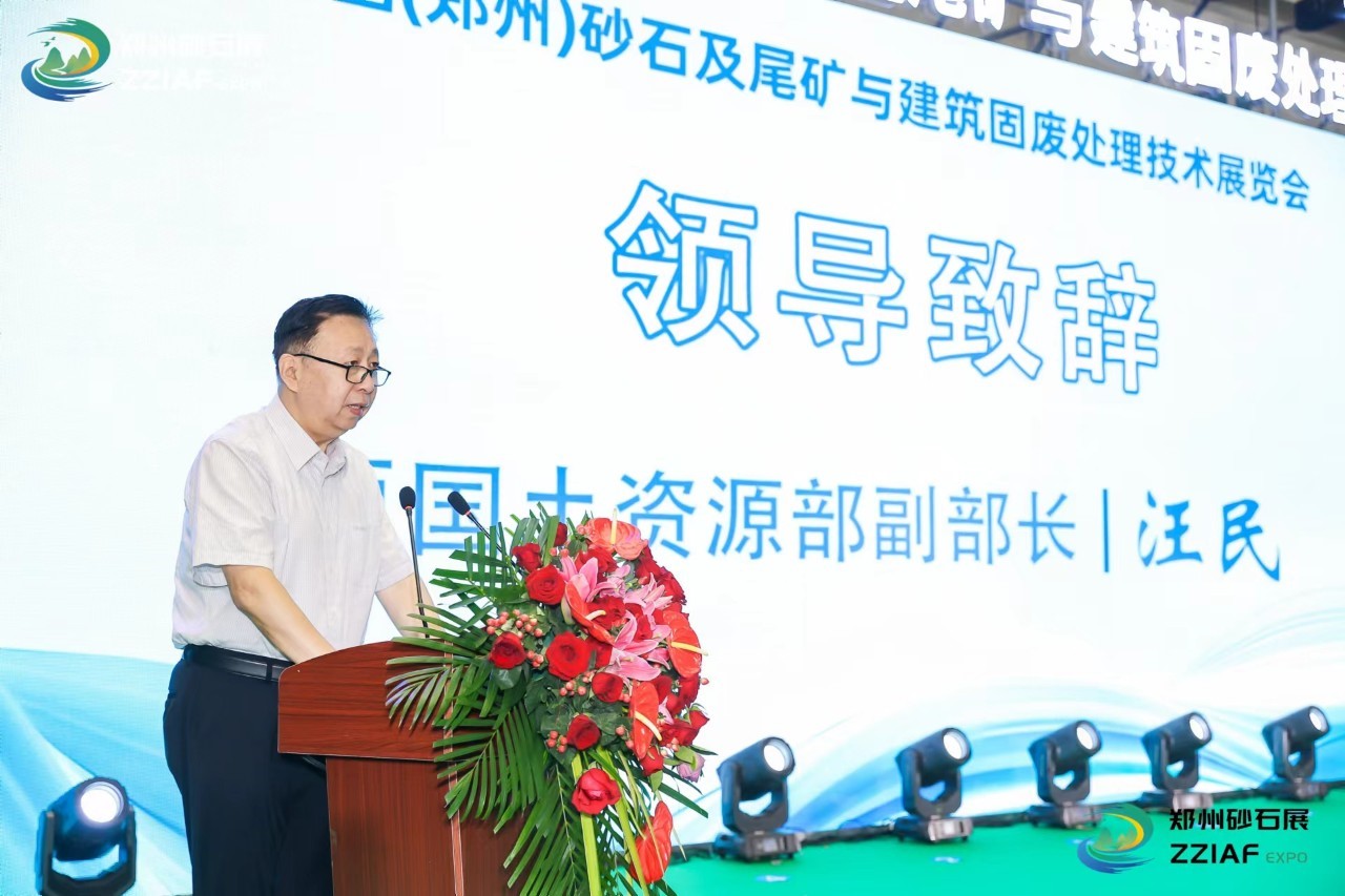 国土资源部原副部长汪民,中国建材联合会副会长、中国砂石协会会长胡幼奕,河南省自然资源厅二级巡视员陈新中,河南省自然资源厅原二级巡视员、河南省矿业协会会长冯进城,河南省豫地科技集团党委副书记、副董事长、总经理于伟等领导嘉宾在开幕式发表致辞。
