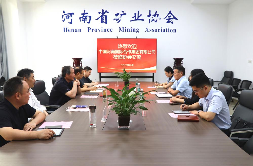 7月8日,中国河南国际合作集团“一带一路”研究院专家张成平一行4人到访河南省矿业协会。冯进城会长主持交流会议,副会长兼秘书长张古彬及矿协相关工作人员出席。中国河南国际集团“一带一路”研究院院长王琳、综合办公室总经理秘书刘泽兴、企划部职员蒲小梅参加座谈交流。